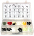 Fast moving body hardware and specialty fasteners in convenient, translucent, durable polypropylene boxes.